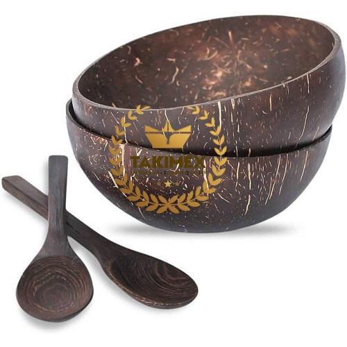 Natural Engraved Bamboo Coconut Bowls Coconut Shell Engraved Bowl Carton Box Set and Spoons