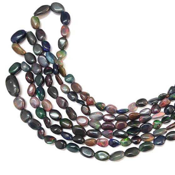 Natural Ethiopian Black Opal Polished Nugget Shape Beads 4x6-8x10mm Welo Fire Opal Smooth Gemstone Beads For Jewelry Making 16"