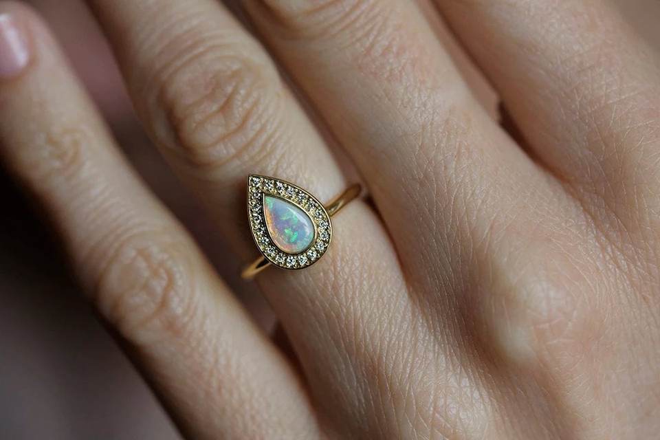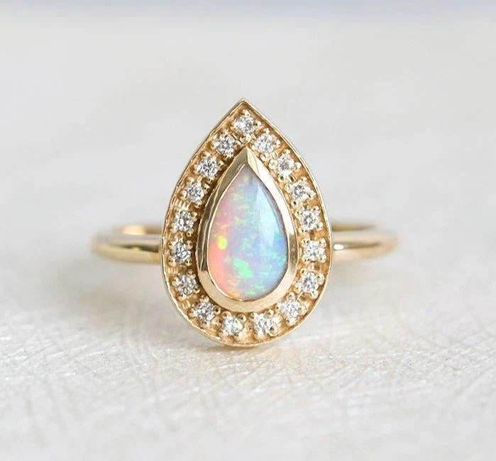 Anniversary Wedding Engagement Rings Women 925 Sterling Silver Natural Ethiopian Opal Bezel Setting Gold Plated Romantic Party