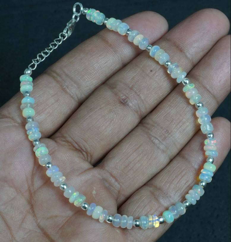 Product Name:Natural Ethiopian Opal Gemstone silver bracelet