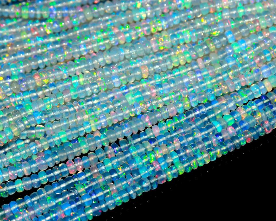 Product name:Natural Ethiopian Opal Smooth Rondelle Beads