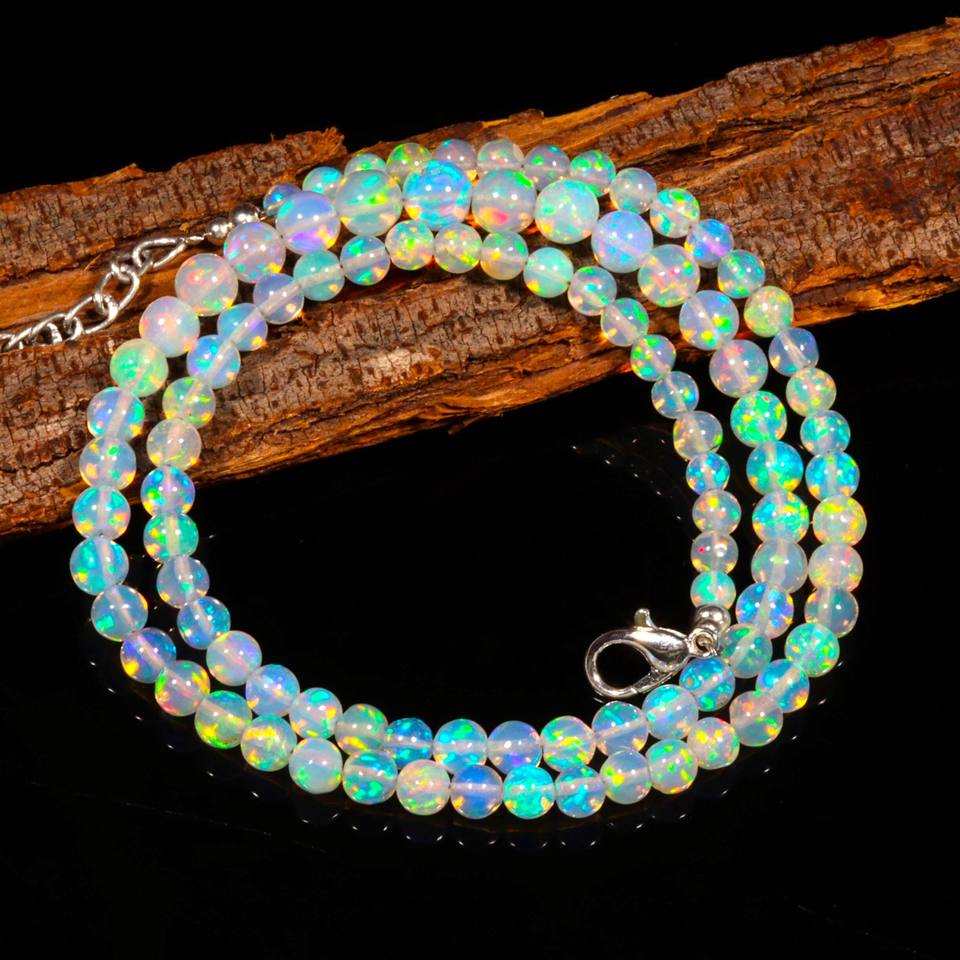 Natural Ethiopian Opal Smooth Round Beads Necklace 4-5mm Fire Opal Gemstones Beaded Jewelry Adjustable Opal Necklace For Women