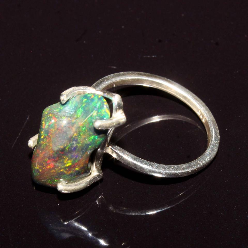 Romantic Ethiopian Opal Stone Silver Ring Natural Raw Rough Gemstone Bezel Setting for Wedding or Party