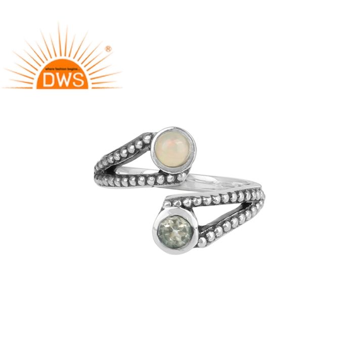 Natural Ethiopian Opal and Green Amethyst Gemstone Adjustable Silver Ring Jewelry 925 Oxidized Silver Ring Jewelry