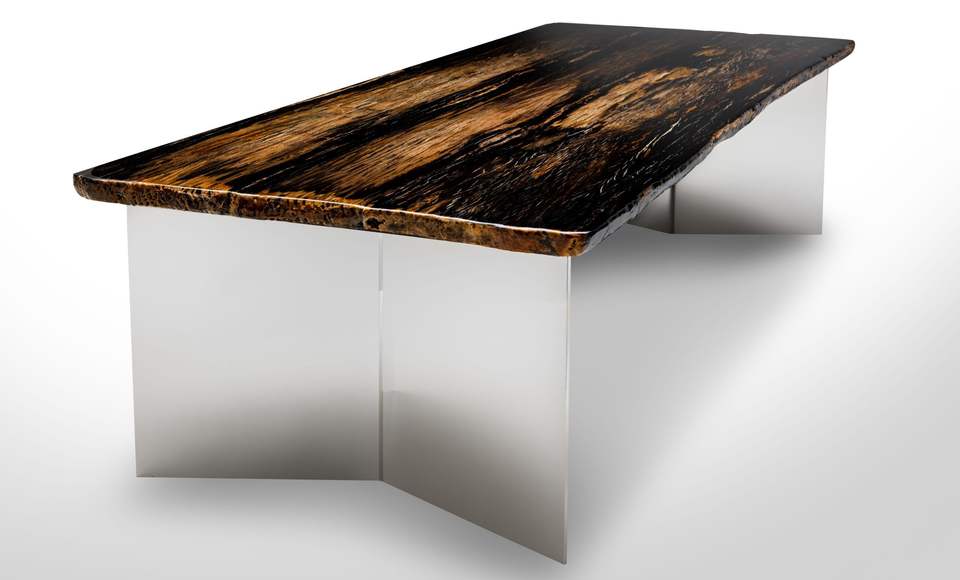 Natural Exclusive Luxury Fossil Console Dining Coffee Side Rectangular Round Square Table With Metal Legs Petrified Wood