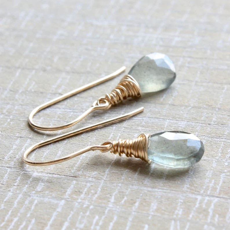 Natural Faceted Quartz Drop Earrings Handmade Brass Wire Vintage Silver Plated Party Wholesale