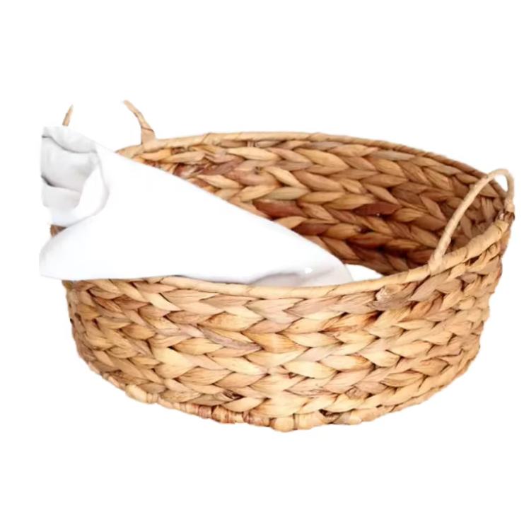 Natural Fiber Storage Baskets Round Water Hyacinth Basket with Woven Handles for Living Room Bedroom Laundry Use from Vietnam