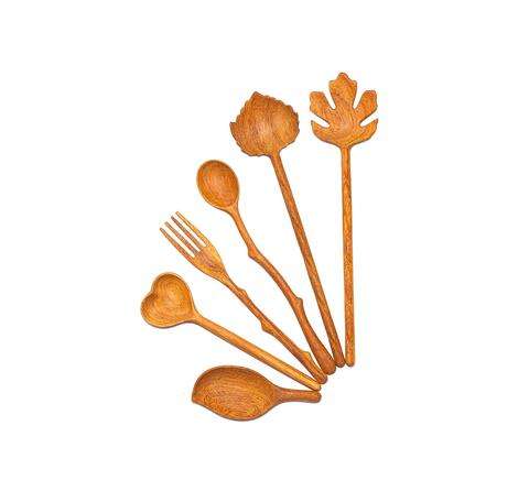 Natural Finish Wooden Kitchen Tools Set for Stirring and Cooking Handmade Utensils for Daily Kitchen Tasks