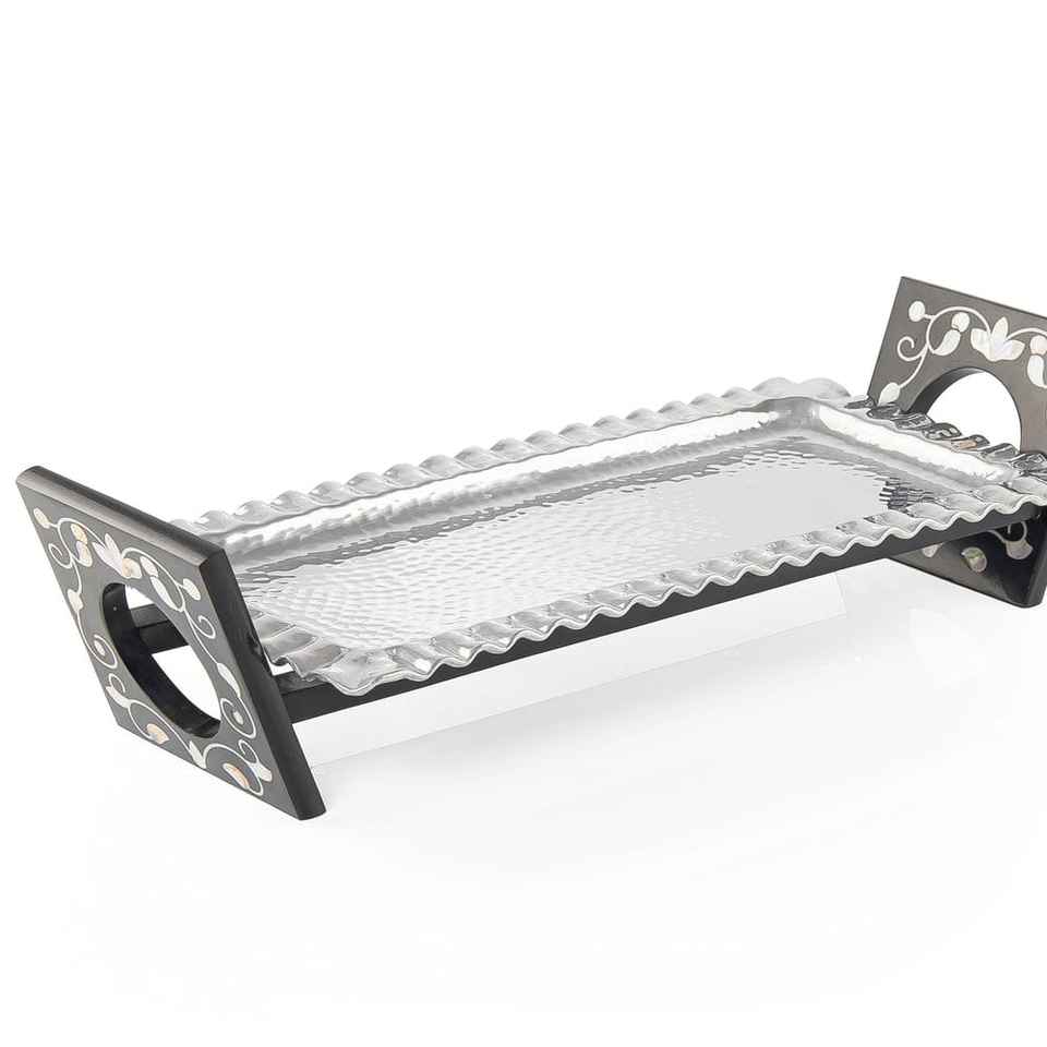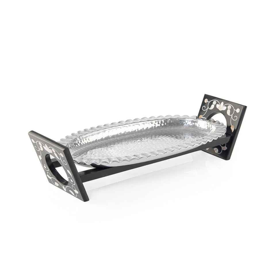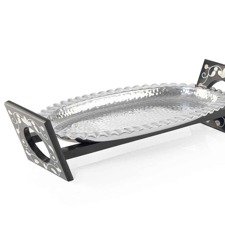 Natural Finished Base for Fruits Dates Serving Handmade Hammered Aluminium Silver Plated Serving Tray Bowl Platter With Wooden