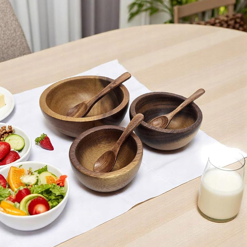 Product Name:Wooden Serving Bowl With Spoon ! Set of 3
