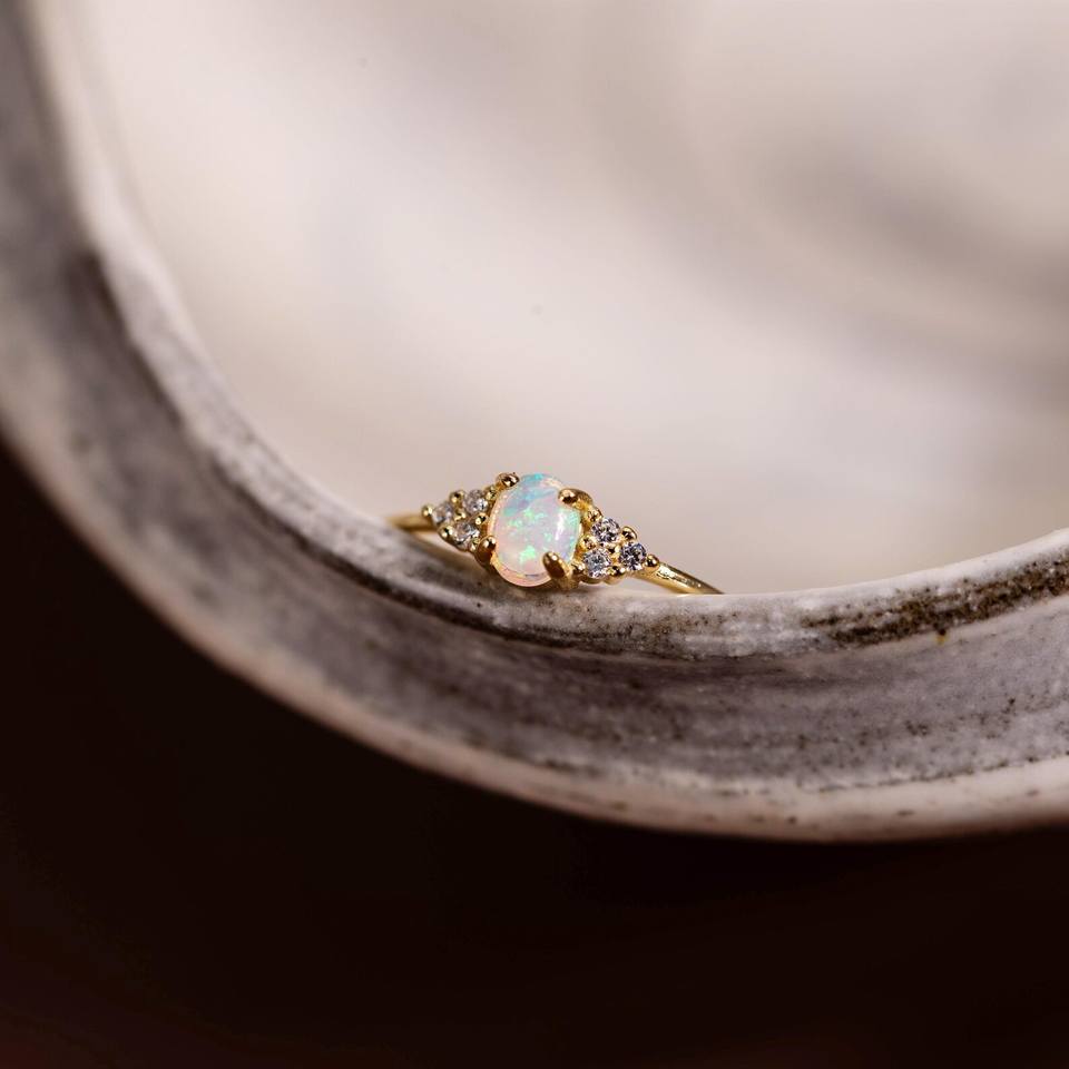 Natural Fire Opal Gemstone Ring Dainty Opal Ring Engagement Ring