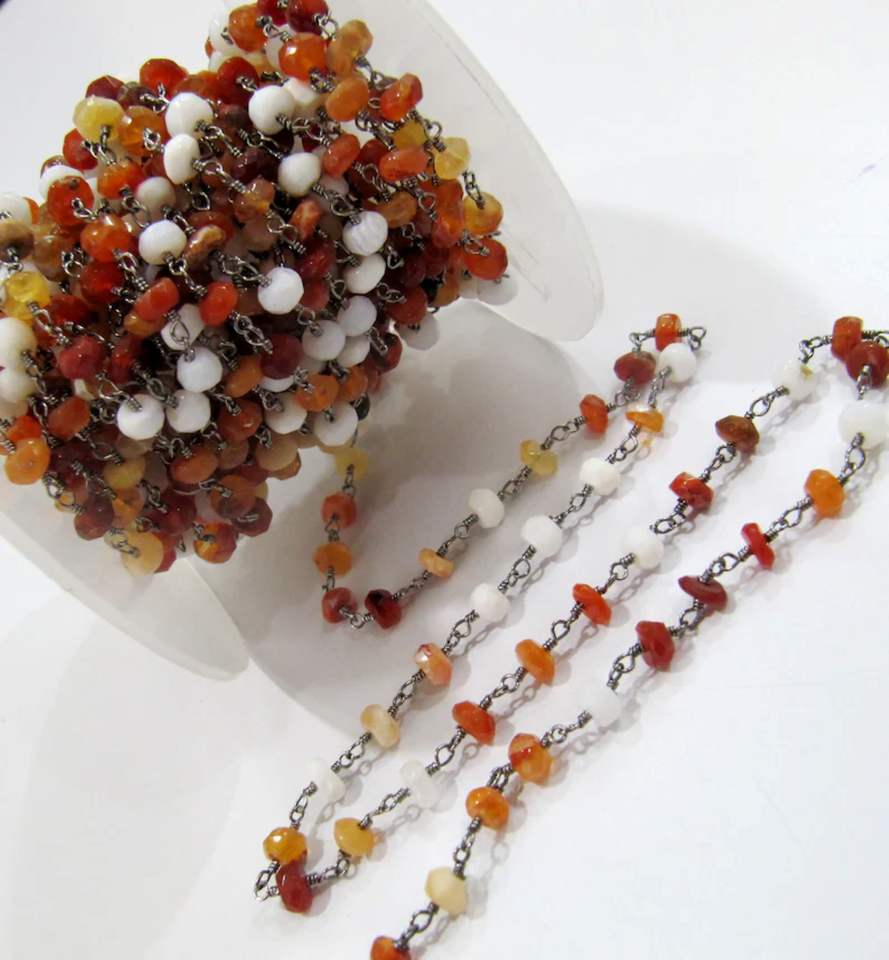 Natural Fire Opal Rosary Chain 4 to 5mm Rondelle faceted Beads Genuine Fire opal Beads Wire Wrapped Chain sold per foot