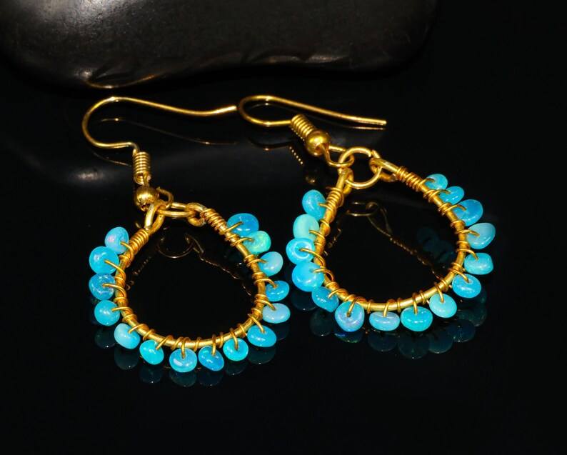 Fire Paraiba Ethiopian Opal Beaded Dangle Earrings
