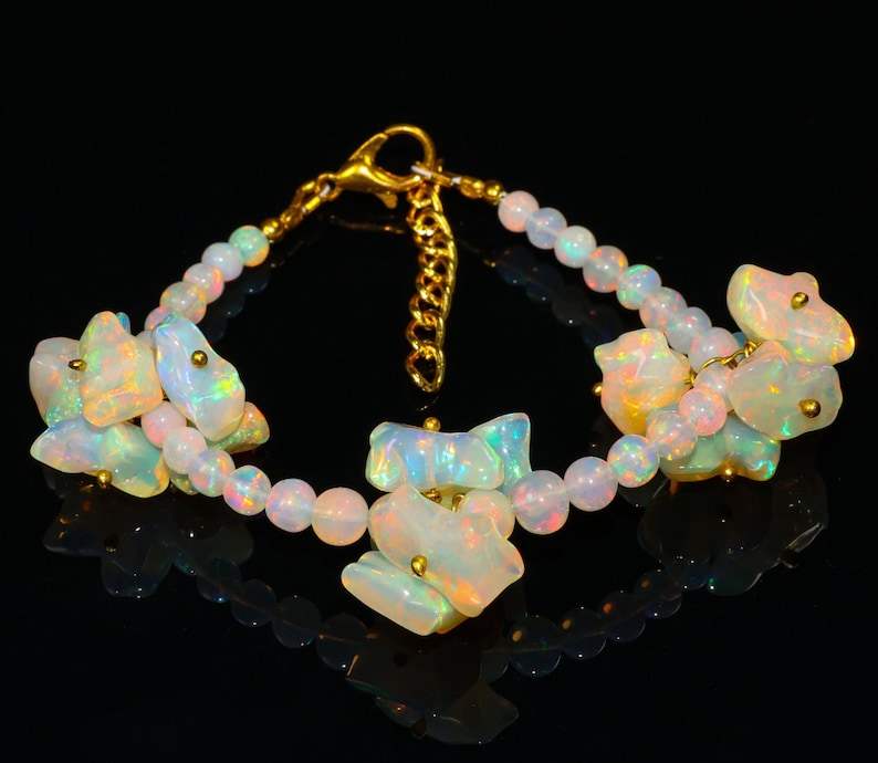 Natural Fire Opal Balls Smooth Rough Handmade Design 925 Sterling Silver 14K Gold Plated GIA Certified Luxury Charm Bracelet