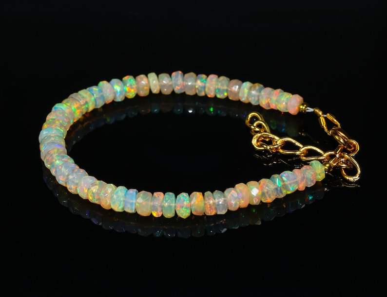Keyword:Fire White Ethiopian Opal Beaded Glowing Expansive Bracelet Crafted