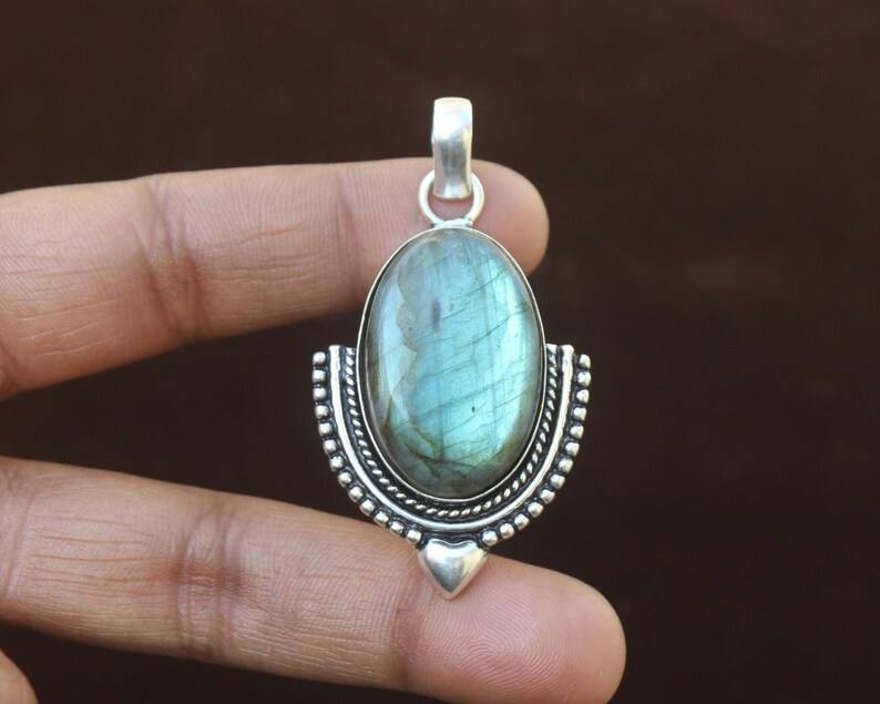 Natural Flashy Labradorite Pendant Boho 925 Sterling Silver Jewelry Handmade Gemstone Necklace Unique Christmas Gift For Women