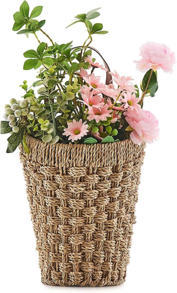 Natural Flower Hanging Basket Handwoven Water Hyacinth Straw Basket for Home Storage Basket Decor Organization