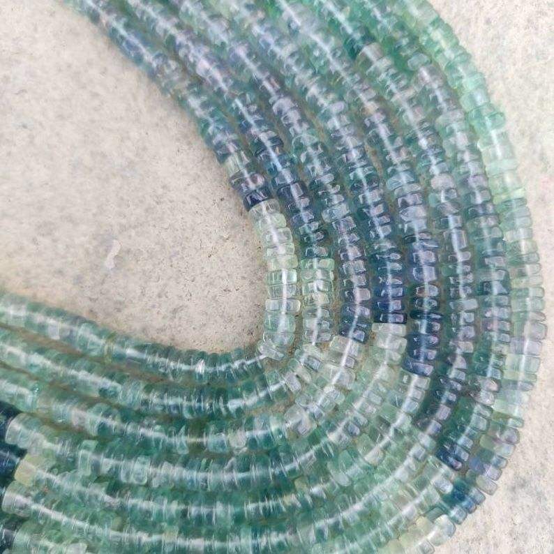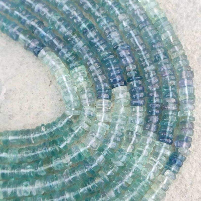 Natural Fluorite Green Gemstone Beads 6mm Smooth Tire Beads 13 Inch Long String for Jewelry Making Necklace Bracelet