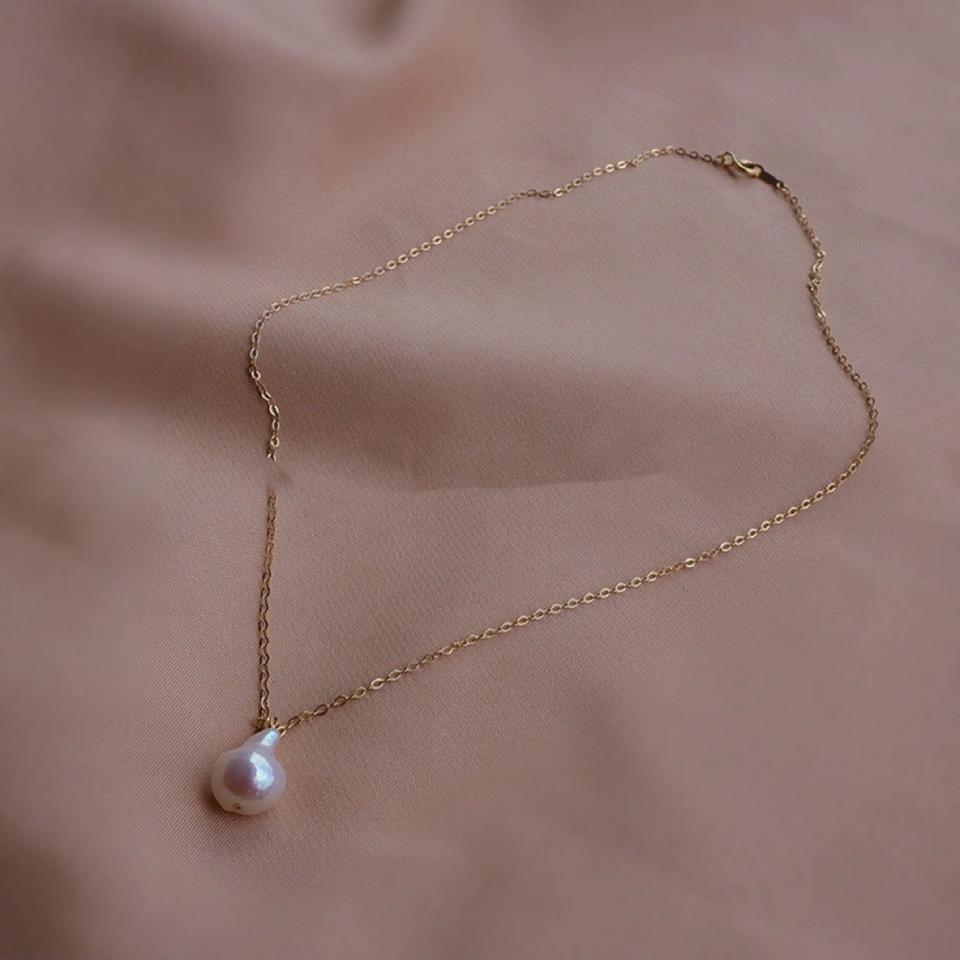 Natural Freshwater Baroque Droplet Shaped Single Pearl Necklace with Irregular Collarbone Chain Naturally Grown Fine Pendant