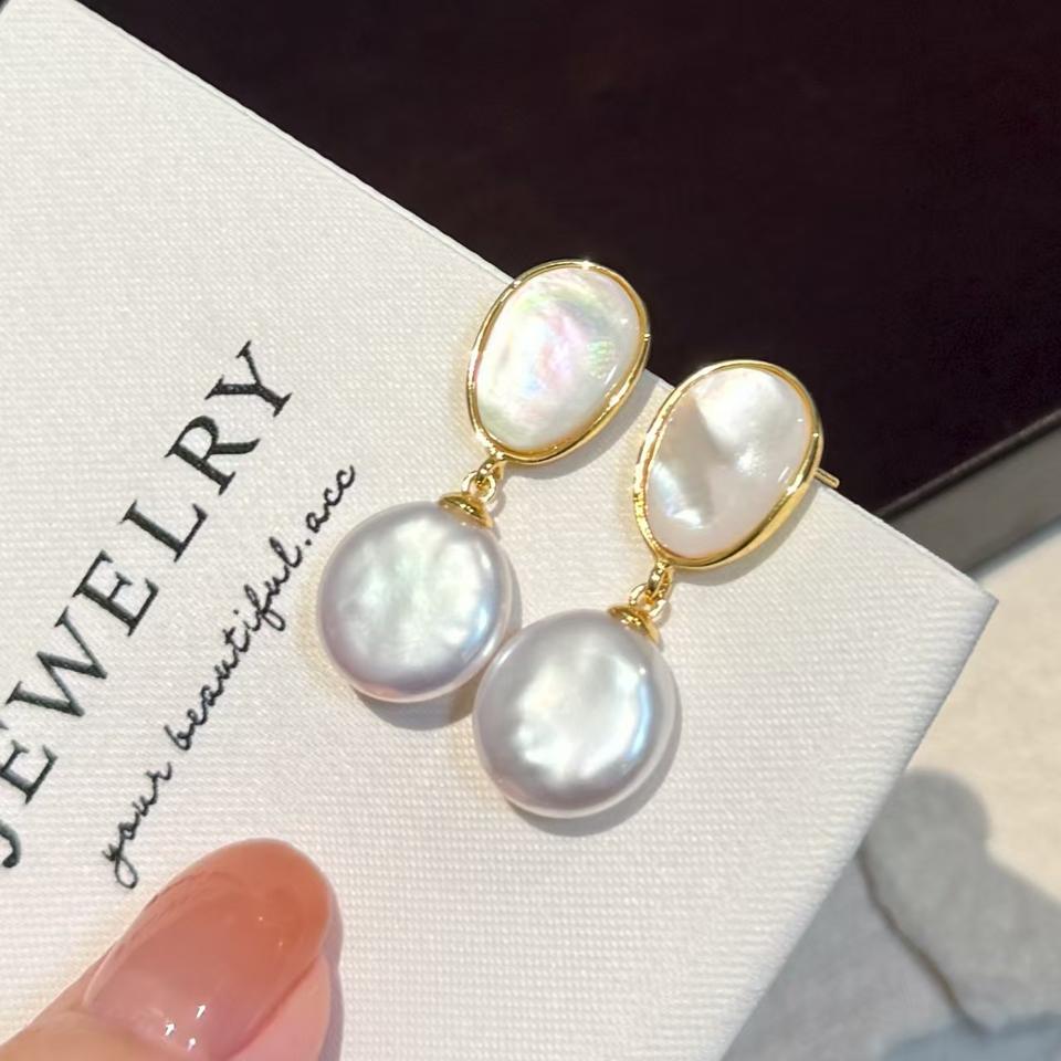 Natural Freshwater Baroque Shaped Real Pearl Dangle Earrings Irregular Fashion Jewelry with Mother Shell Buttons