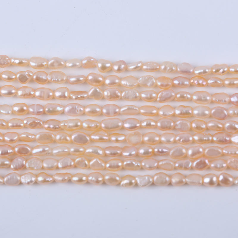 Natural Freshwater Pearl DIY Necklace Bracelet 3-4mm Loose Bead String Double-Sided Glossy Pink Potato Shape Zhuji Straight Hole