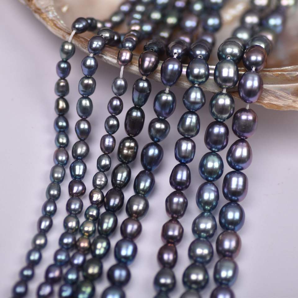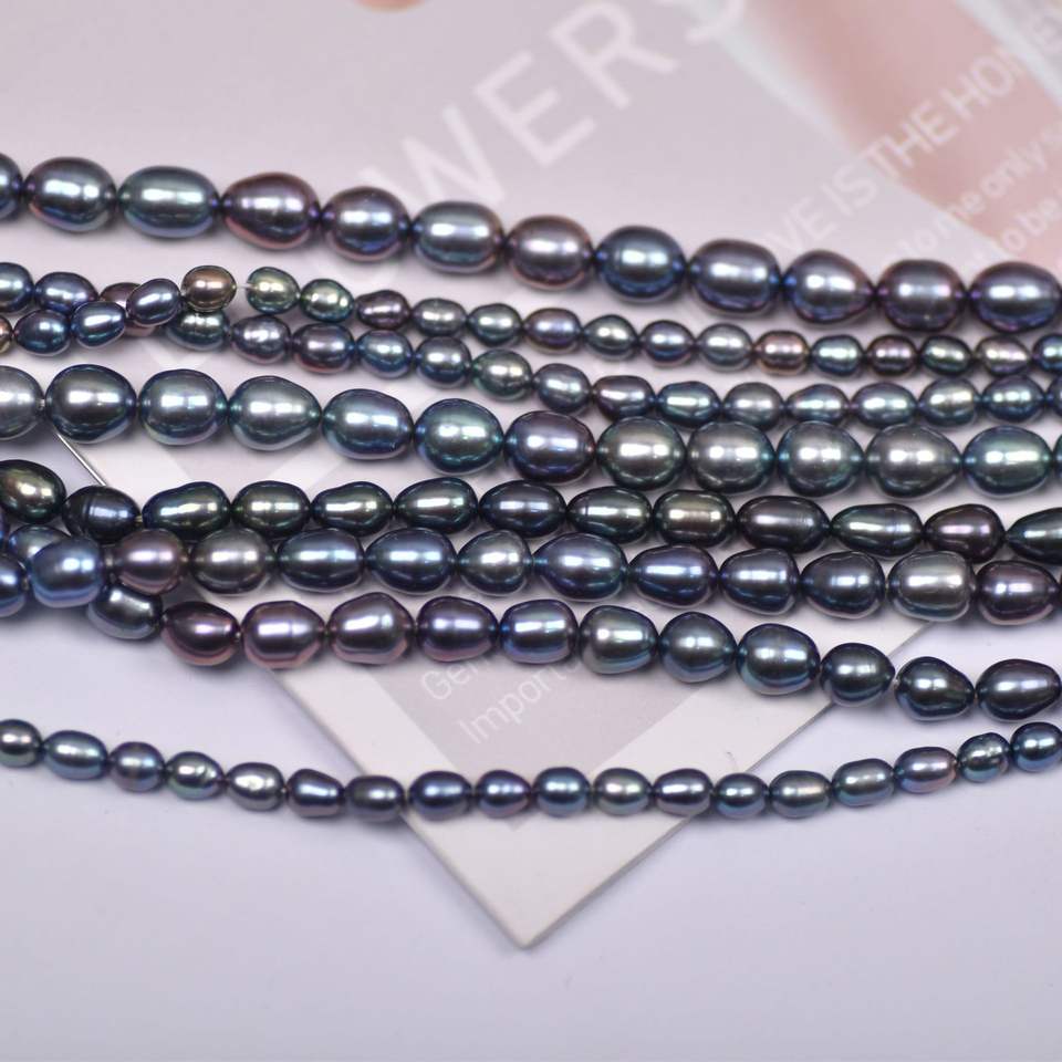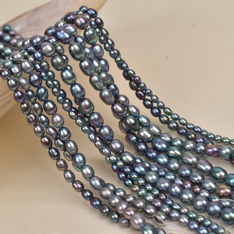 Natural Freshwater Tahiti Peacock Green Black Pearl Necklace 4-9m Meter Loose Beads Semi-Finished Product with White Pink Tones