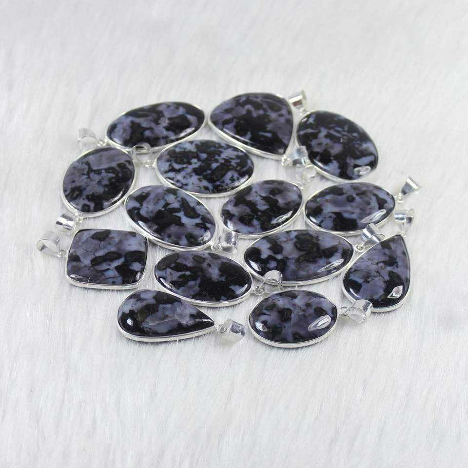 Natural Gabbro Jasper Gemstone Pendant Necklace Bulk Lot Bezel Setting Silver Jewelry Wholesale Cabochon For Women's Jewelry