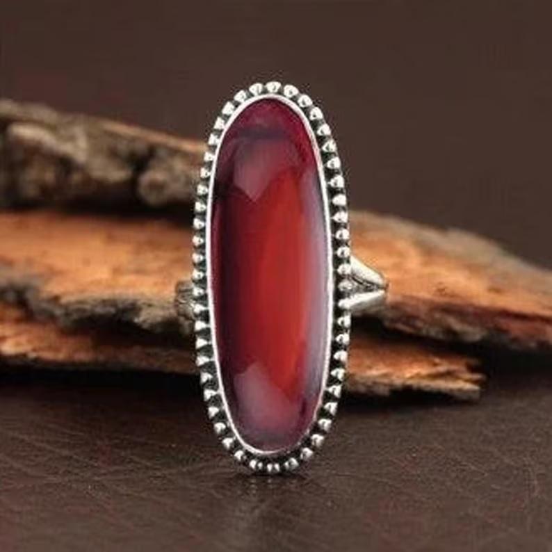 Natural Garnet 925 Sterling Silver Handmade Oval Long Stone Promise Ring for Women