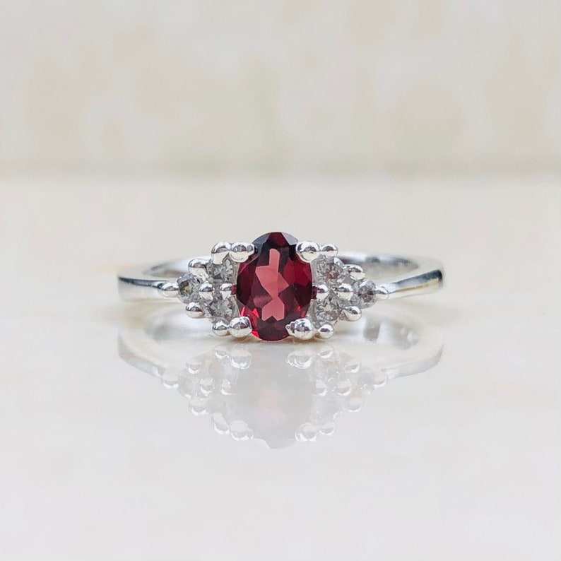 Natural Garnet Oval Ring 925 Sterling Silver 14K Gold Plated Handmade January Birthstone Cubic Zircon Jewelry