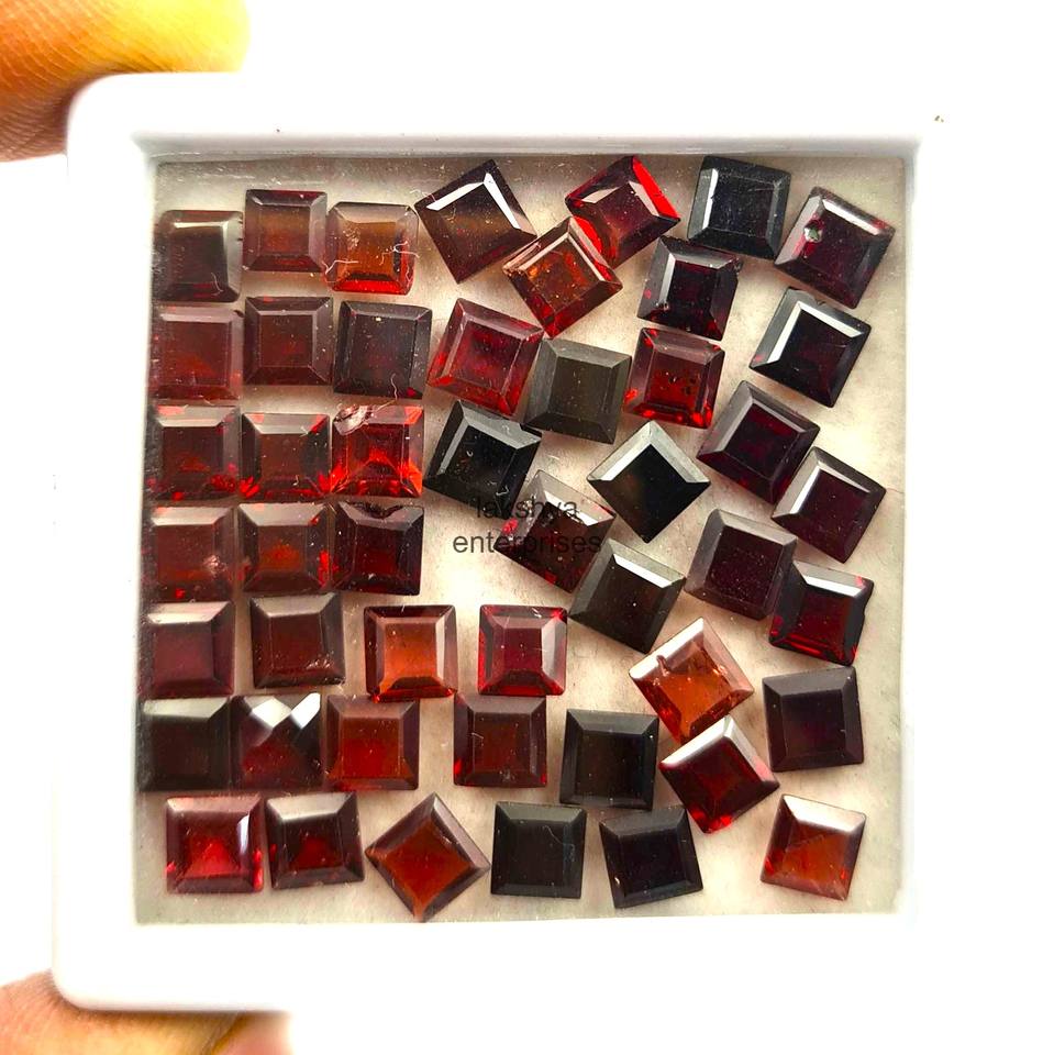 Natural Garnet Square Cut Faceted Loose Gemstone For Jewelry Making 7mm Princess Cut Red Garnet Stone at Wholesale Bulk Price
