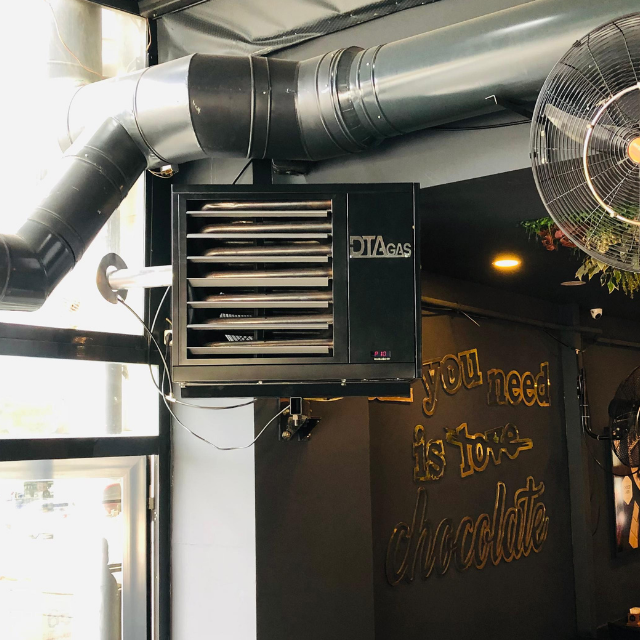 Natural Gas Hot Air Heater 25kW Wall Mounted Industrial Space Heater for Cafes Warehouses Factories Outdoor Areas Household