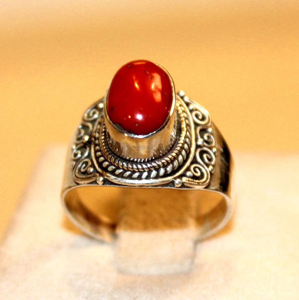 Grade Red Coral Natural Gemstone Set Unisex Sterling Silver 925 Resizable Wedding Anniversary Party Fashion Ring for Women for
