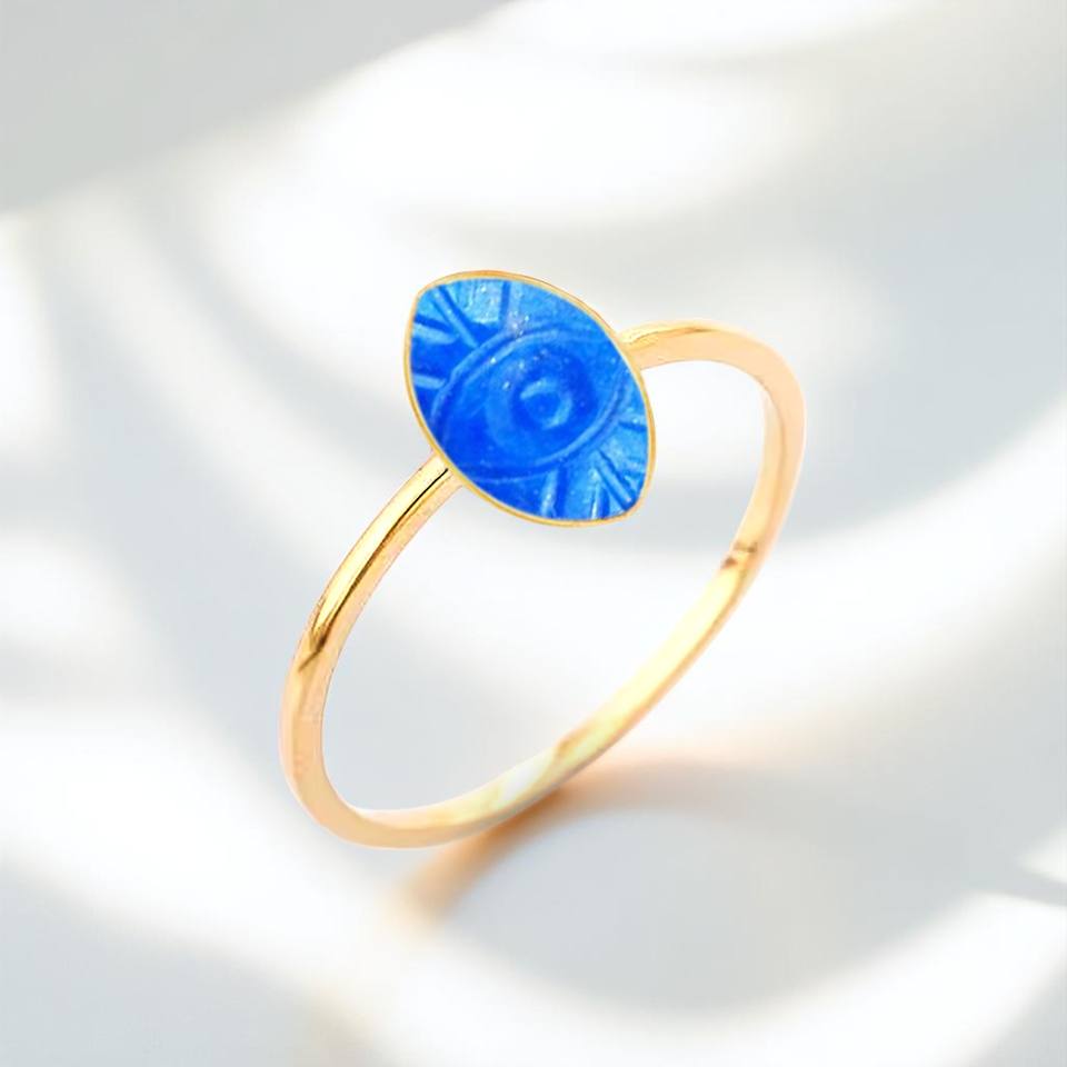 Natural Gemstone Carved Evil Eye Bezel Ring Plain Band Fashion Gold Plated Ring Jewelry Wholesale Customized Jewels