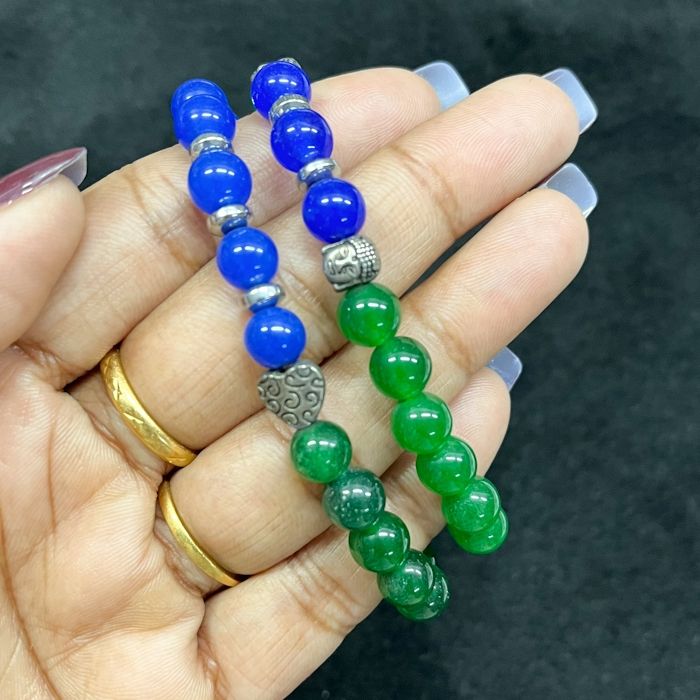 Natural Gemstone Lapis & Green Aventurne With Heart & Buddha Charm 8mm Beads Stretch Wholesale Bracelet Men's Women Gifts Ideas