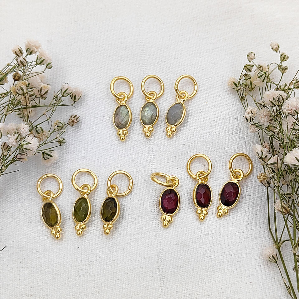 Natural Gemstone Oval Charm | 925 Sterling Silver Pendant | Genuine Stone Handmade Charm for Necklace & Bracelet