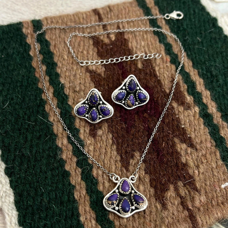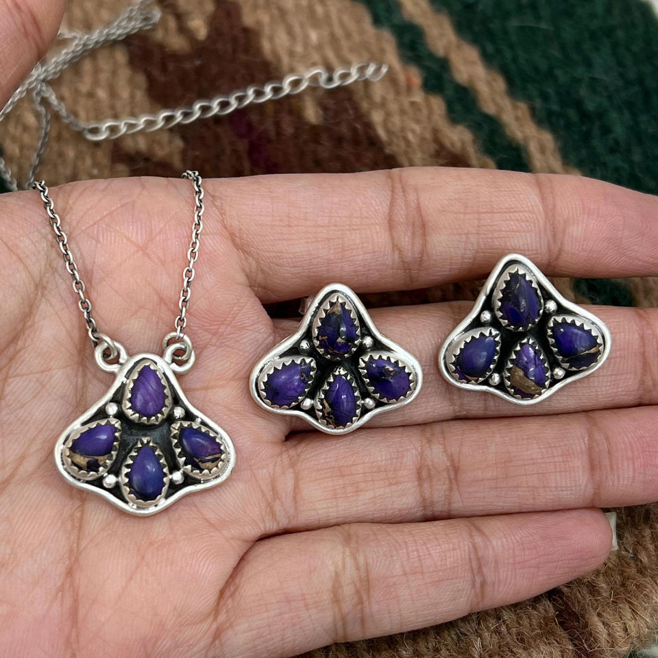 Product name:Sterling Silver Purple Oyster Turquoise Jewelry Handmade Set