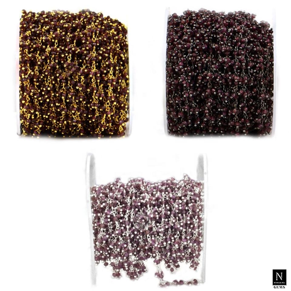 Natural Gemstone Rhodolite Cluster Wire Wrapped Link Rosary Beads Chain Roll for Jewelry Making Wholesale Necklace Gift Findings