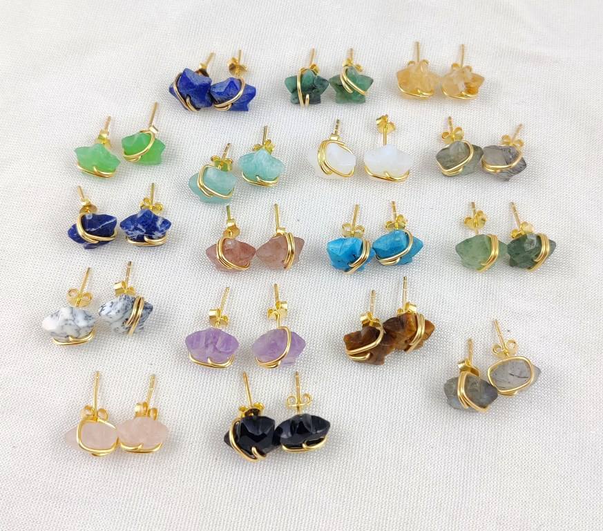 Natural Gemstone Star Shape Wire Wrapped Sterling Silver Gold Vermeil Stud Earrings Fashion Jewelry Vermeil Stud