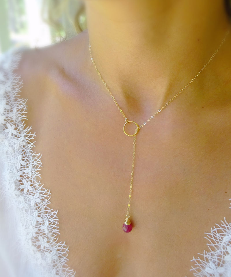 Product name:Rainbow moonstone ruby aqua chalcedony lariat necklace