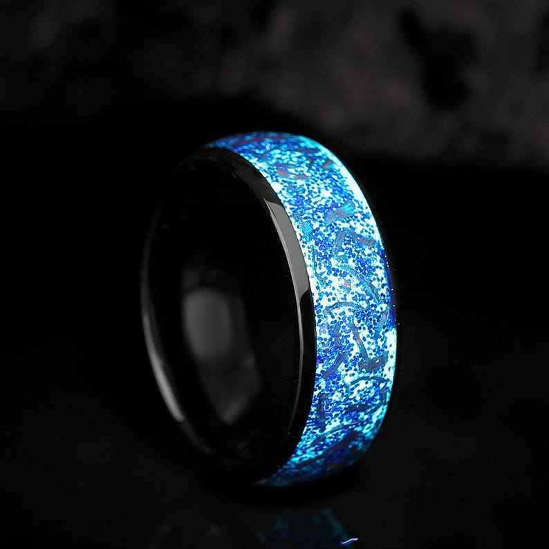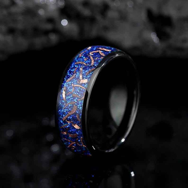 Natural Glowing Blue Sandstone Band Ring Galaxy Moon Rainbow Fire Fantastic Band Ring Couples Gift Band Universal Fine Jewelry