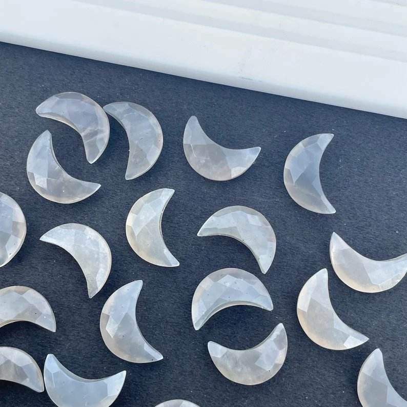 Natural Gray Moonstone Moon Shape Faceted Briolette Loose Gemstone Beads Strand Jewelry Making Supplies Wholesale