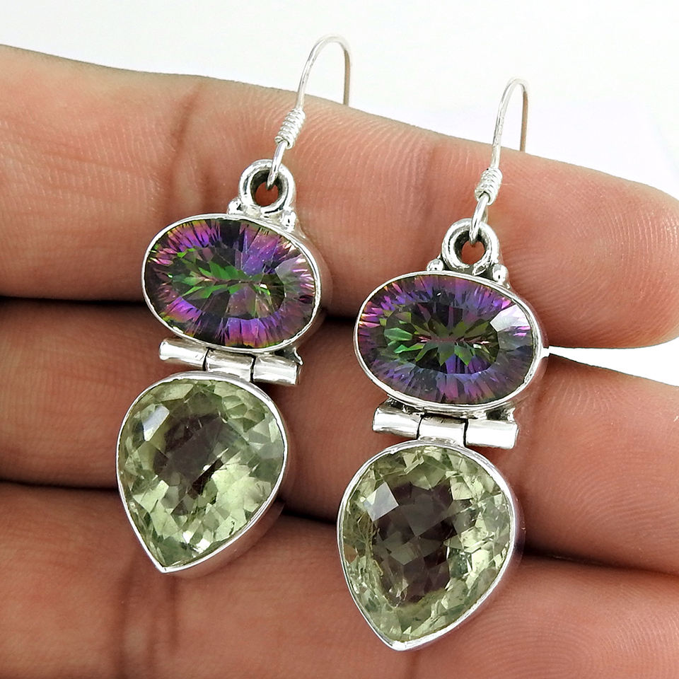 Natural Green Amethyst Mystic Topaz Gemstone 925 Sterling Silver Unique Design Dangle Earrings for Woman Bohemian Jewelry India