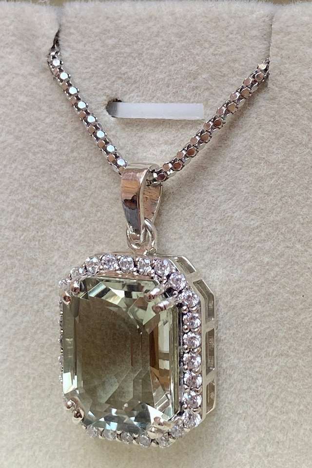 Natural Green Amethyst Necklace With Beautiful Italian Chain In Silver Elegant Handmade Gemstone Jewelry For Women Gift