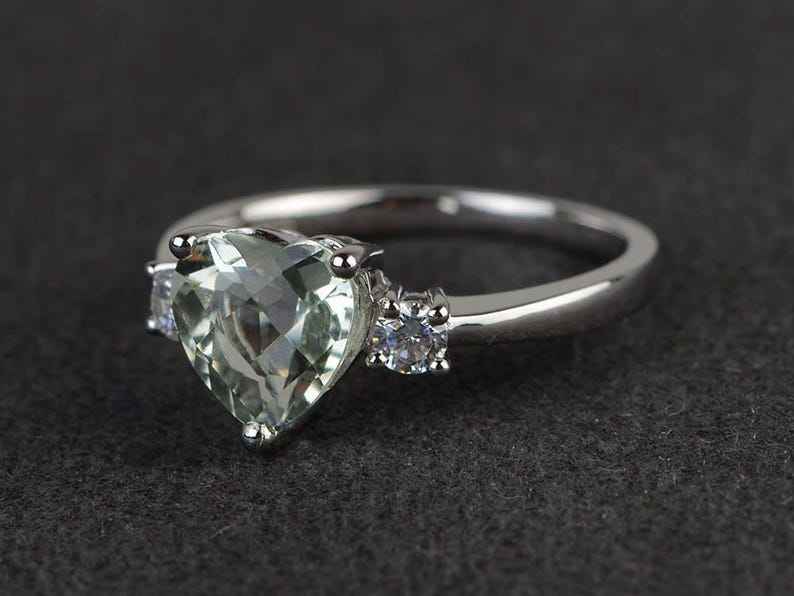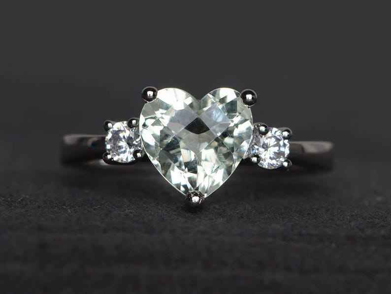 Natural Green Amethyst Ring Engagement Ring Heart Cut Gemstone Green Gemstone Fine Jewelry For Women