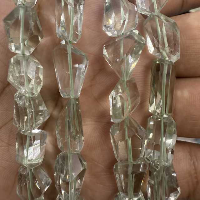 High Quality Natural Green Amethyst Tumbled Faceted Beads 8x10mm to 9x11mm-100% Natural Gemstones for Jewelry Making 16 Inches