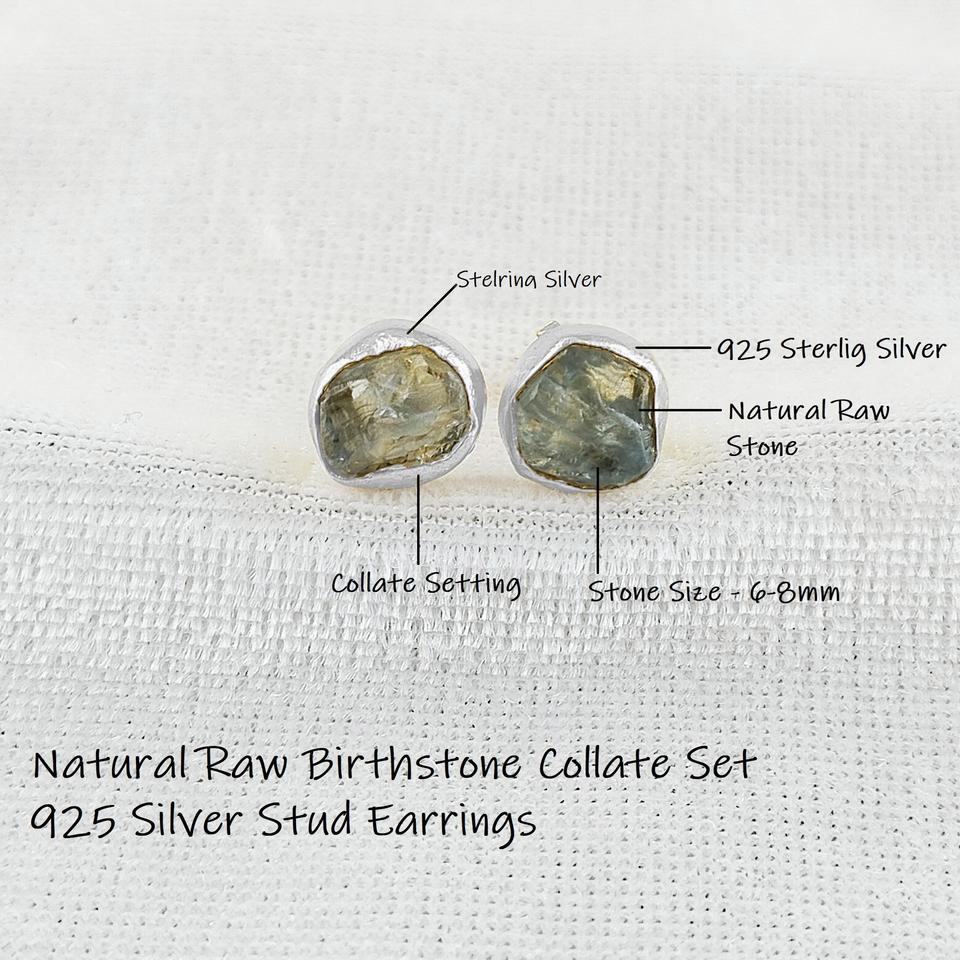 Natural Green Color Emerald Raw Shape Stone Collate Set Sterling Silver 925 Jewelry Stud Earring Fine and Fashion Gemstone Jewel