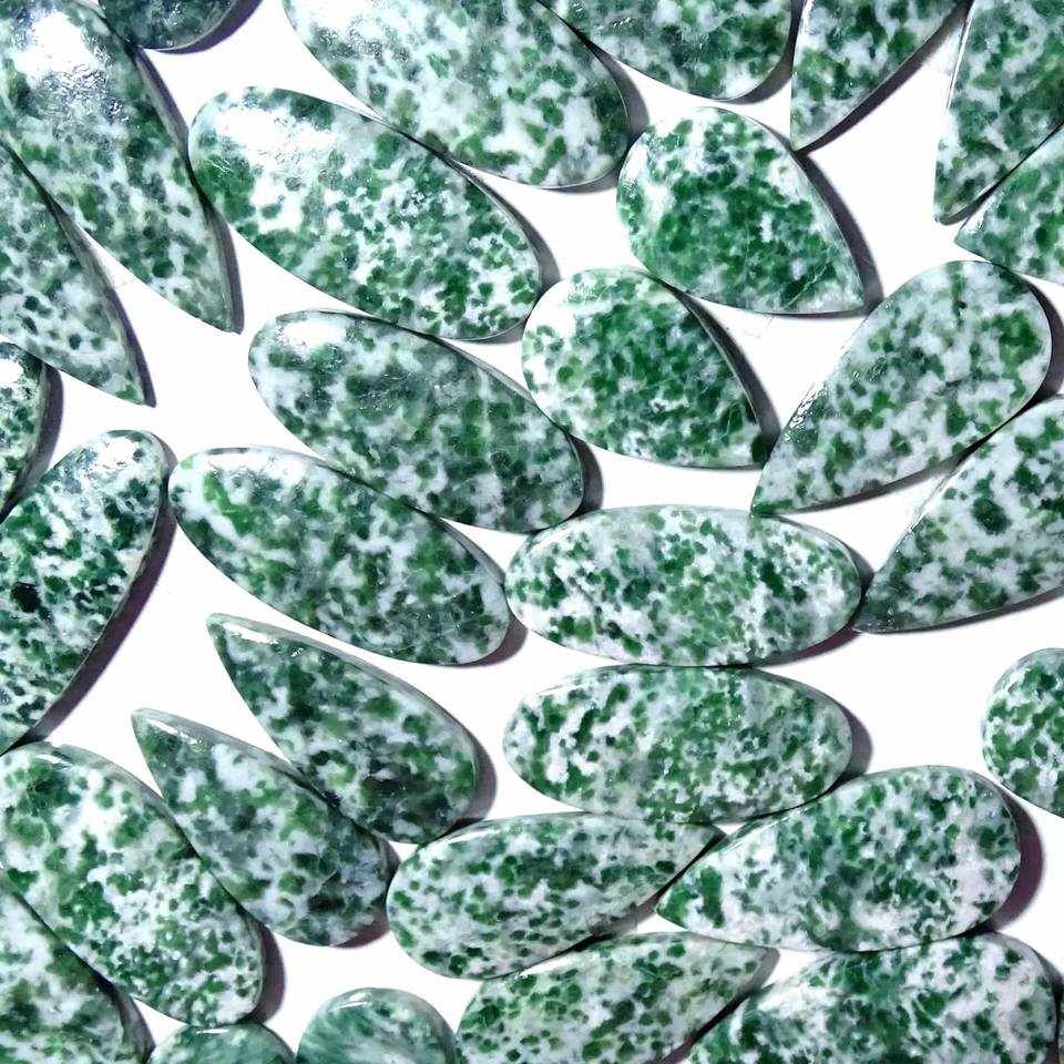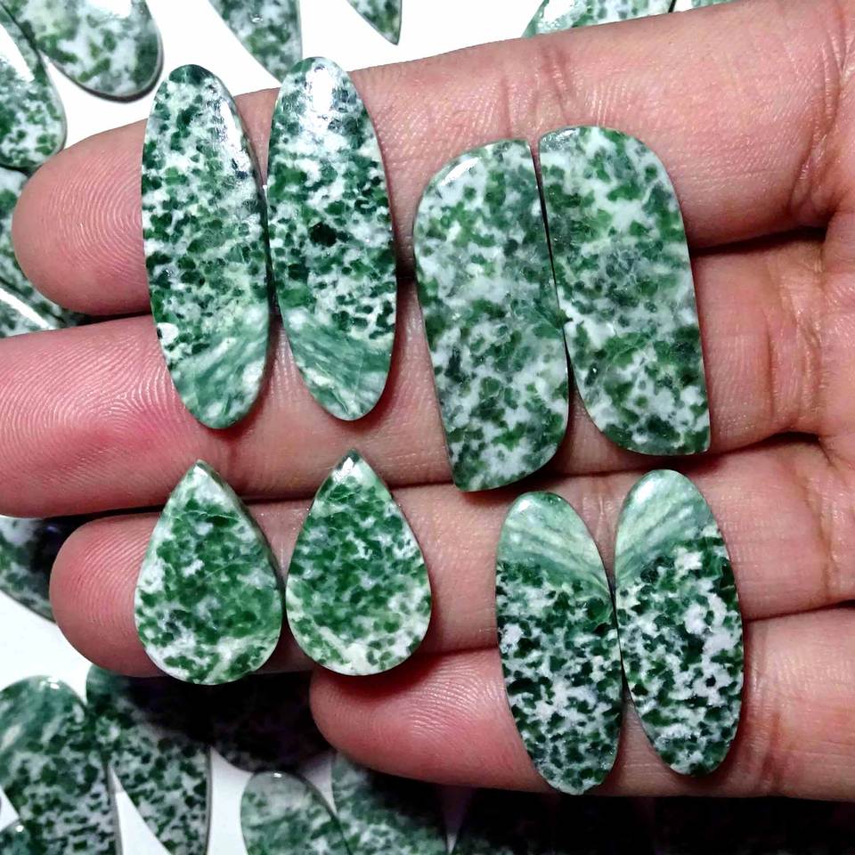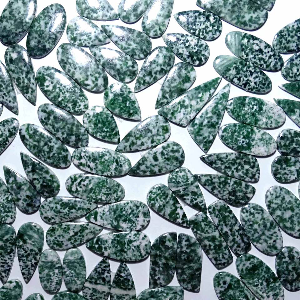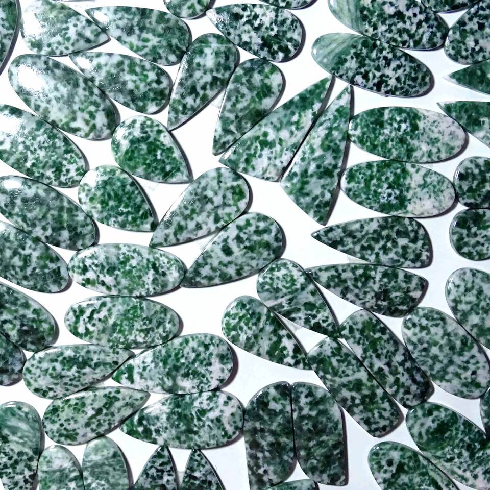Natural Green Dot Jade Pair Cabochon Loose Gemstone All Mix Shape and Size Green Dot Jade Pair Gemstone for Use Jewelry Making