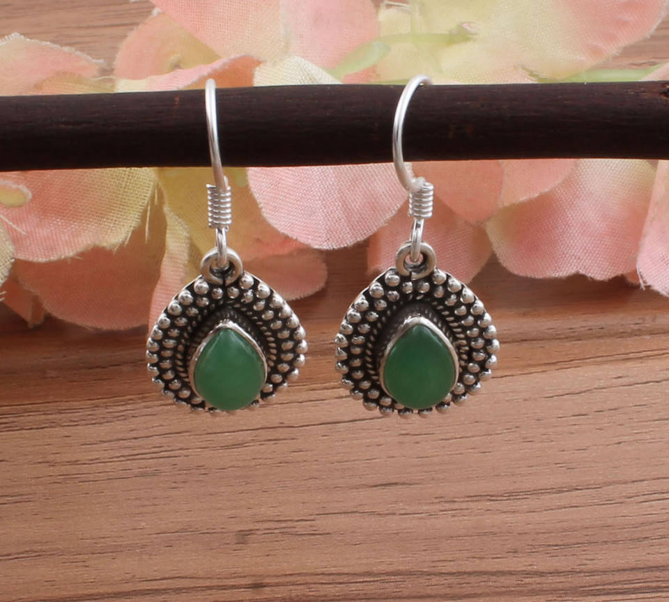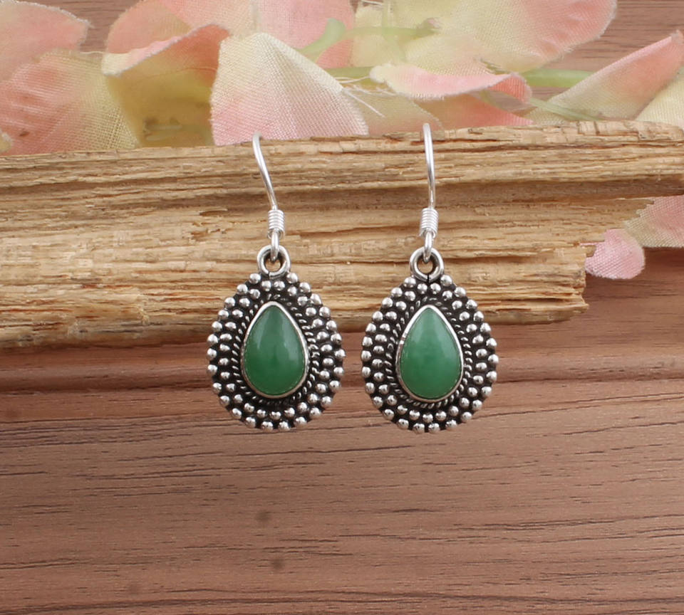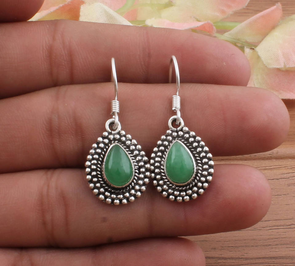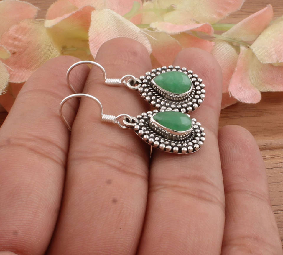 Natural Green Jade Earrings 925 Sterling Silver Dotted Genuine Jadeite Gemstone Drop Earrings Women Handmade Wedding Party