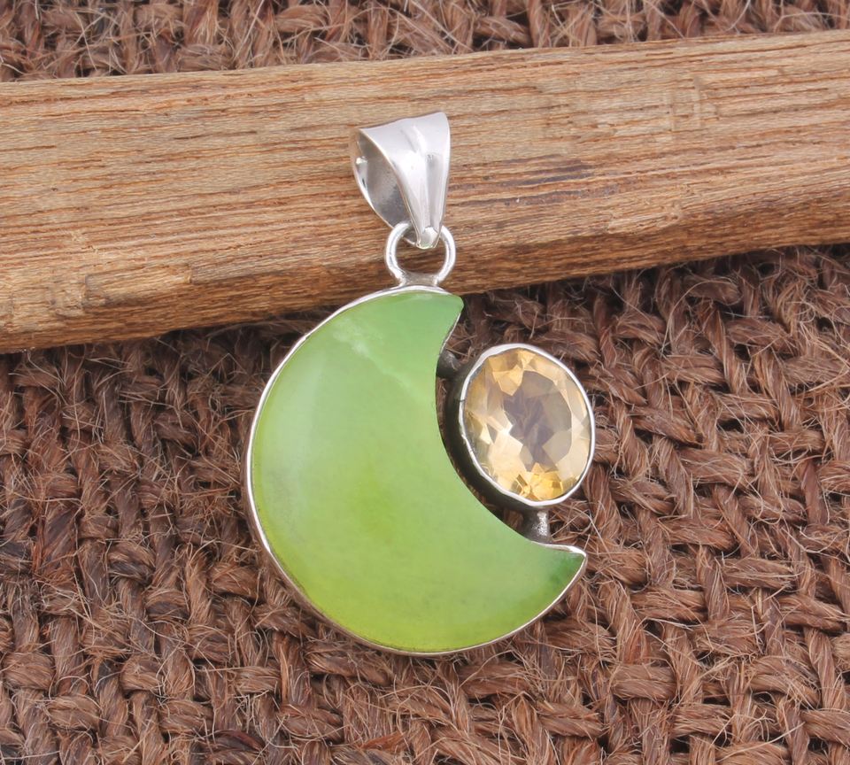 Natural Green Jade Moon Pendant 925 Sterling Silver Crescent Moon Charm Necklace Pendant Citrine Stone Jewelry Women Wholesale