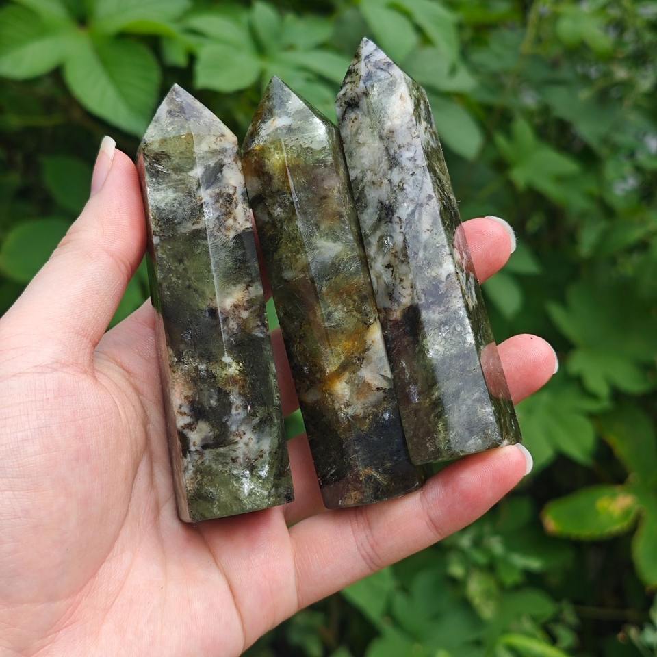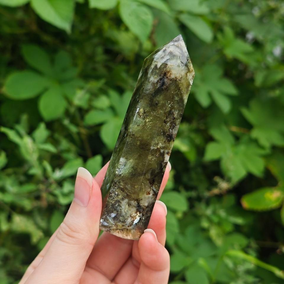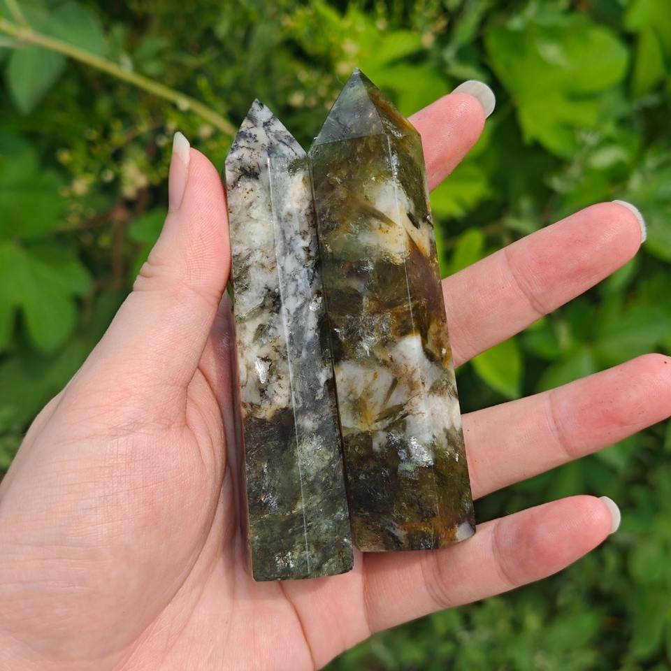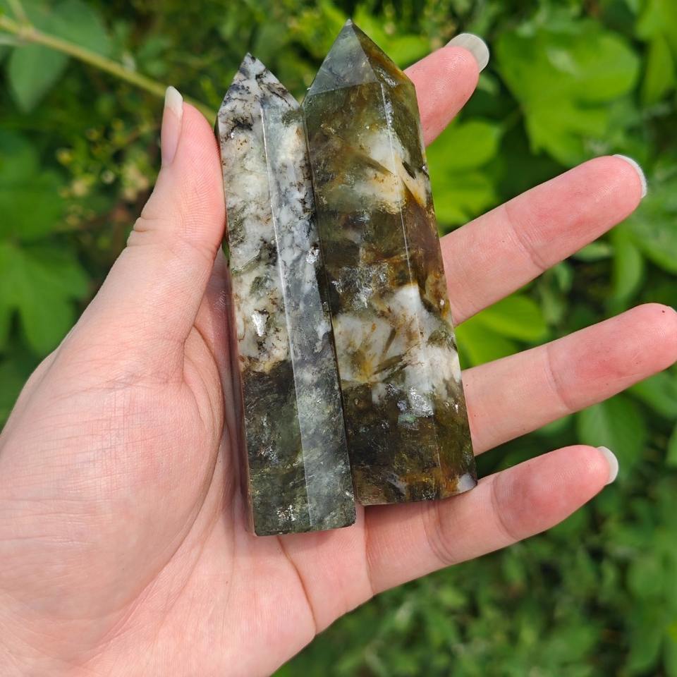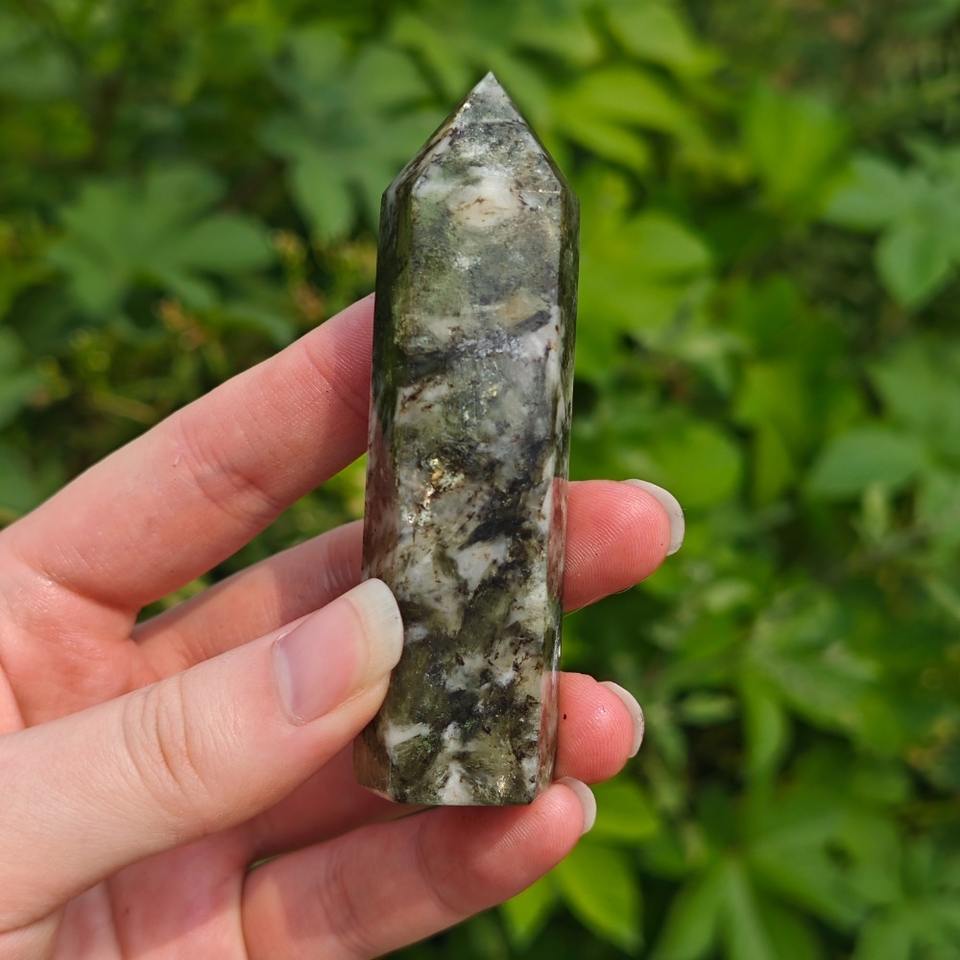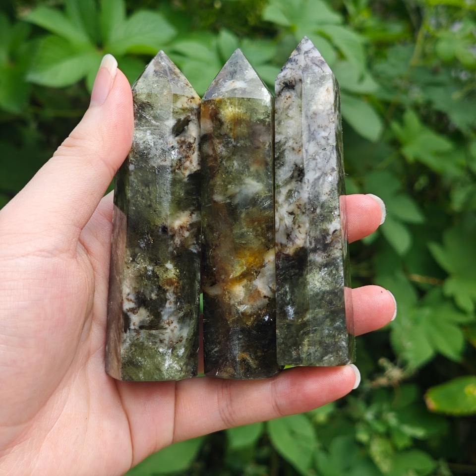 Natural Green Mica Stone Tower Polished Crystal Ornament Handmade Gemstone Craft for Home Office Decor Gift Collection